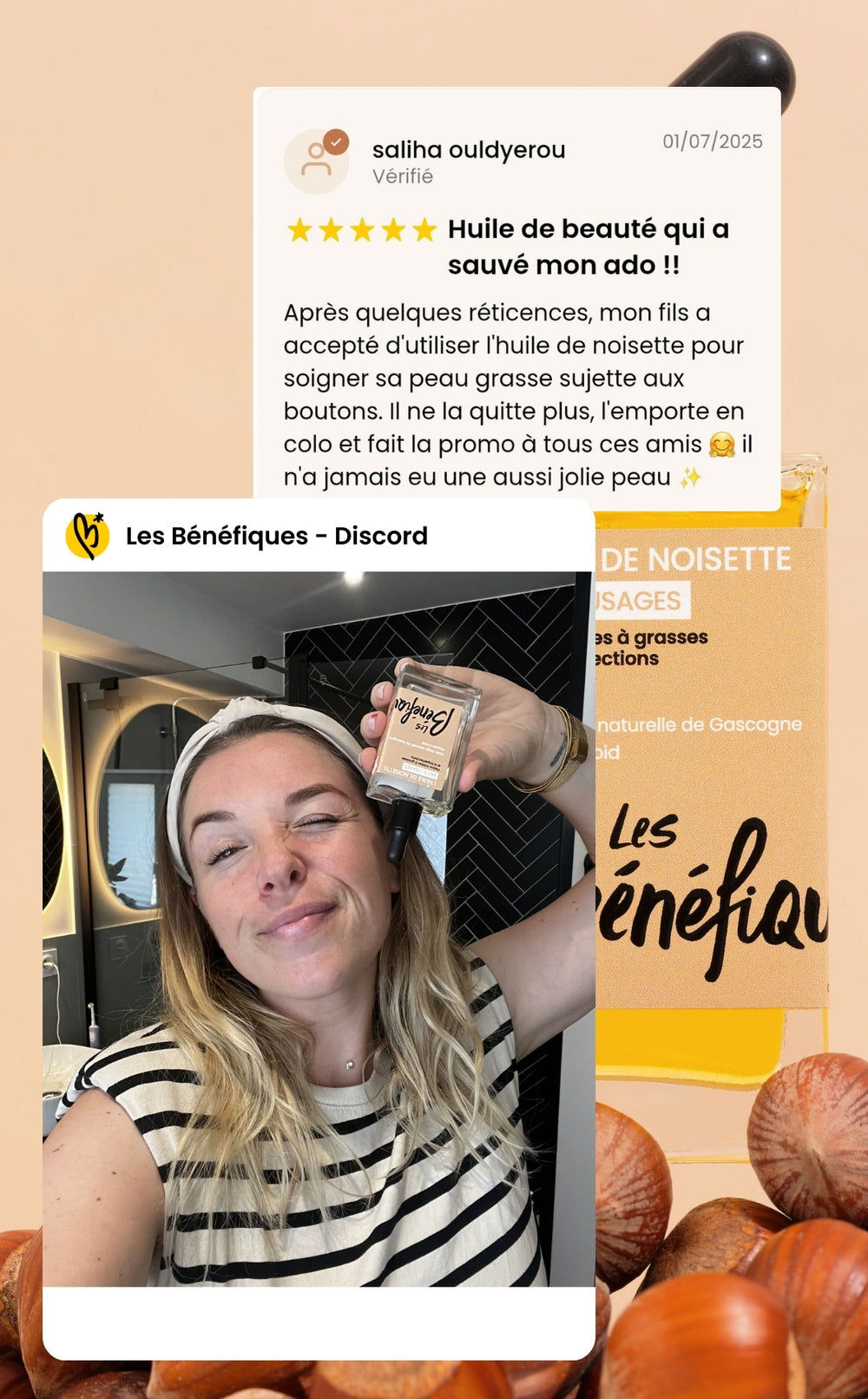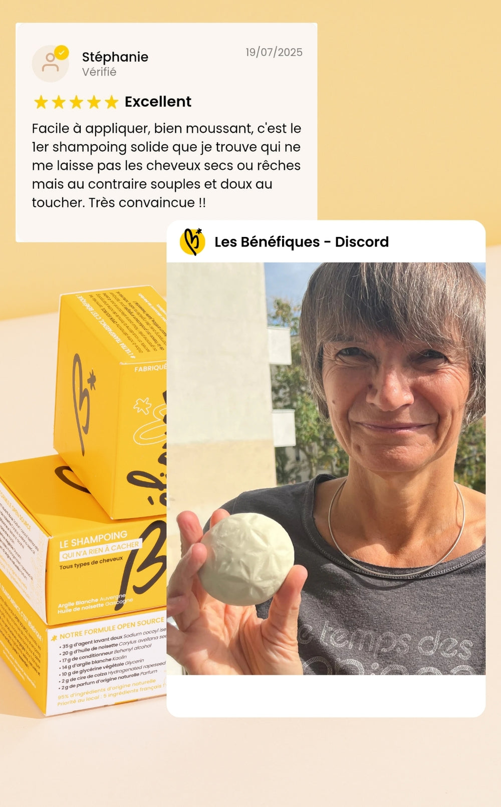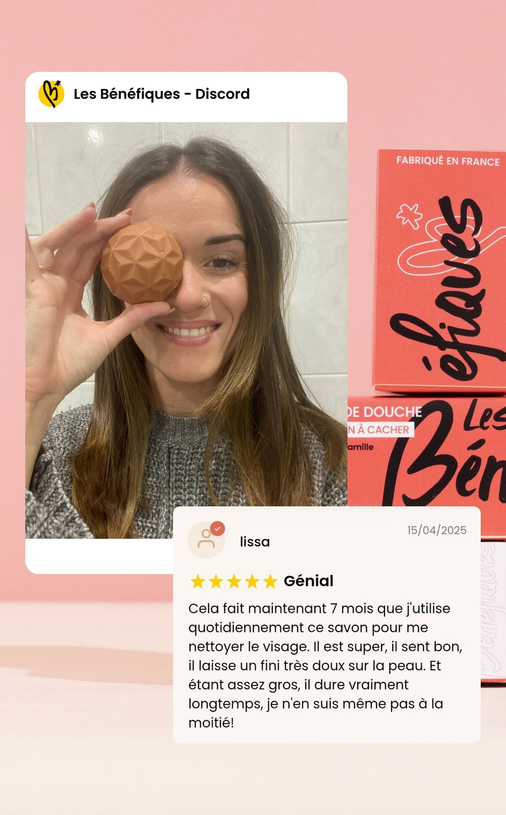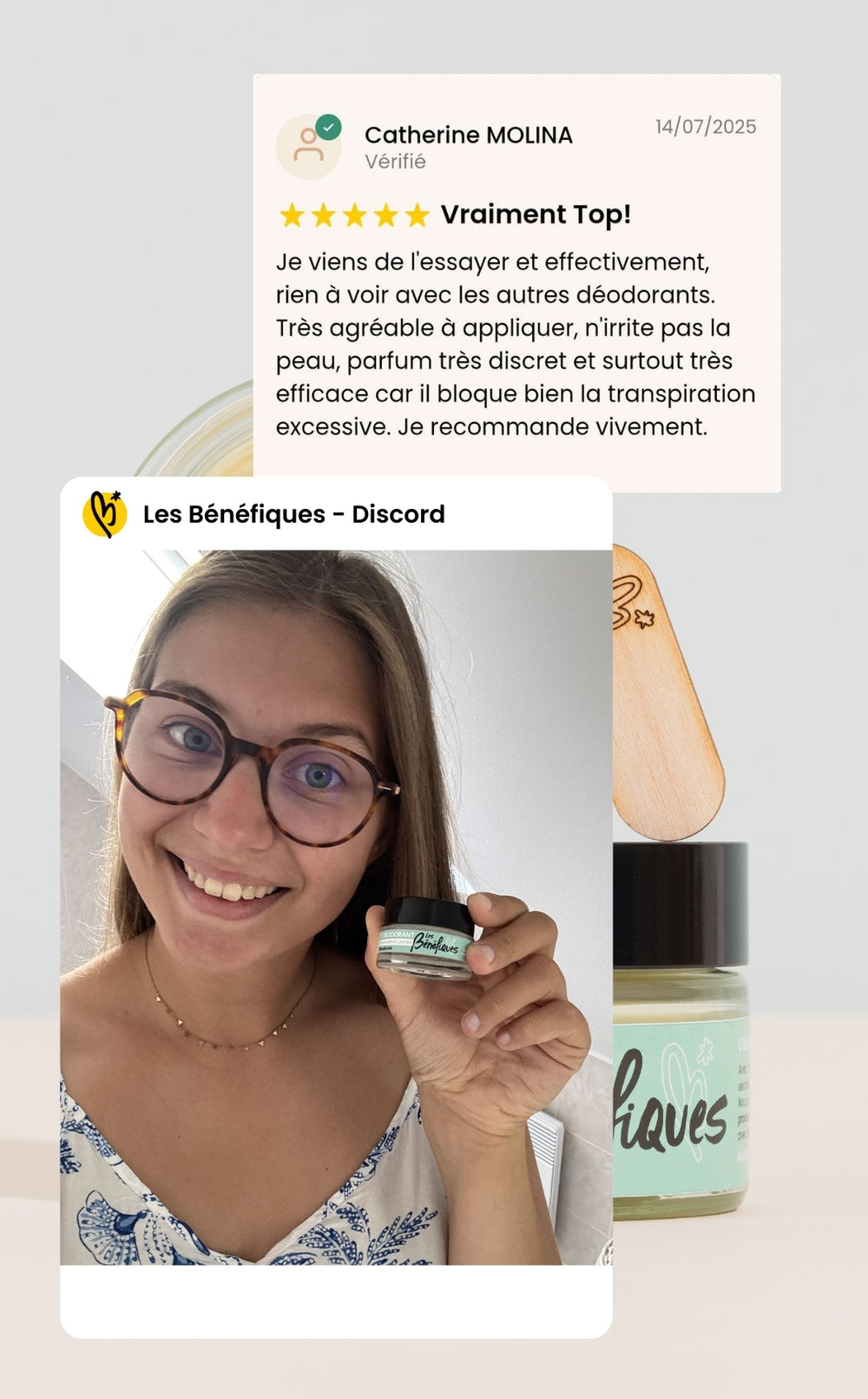 Nos produits Bénéfiques sont le résultat d'un processus de co-création avec plus de 50 testeurs après un mois d'utilisation en conditions réelles. Chaque retour a été pris en compte, c'est un choix essentiel pour garantir l'efficacité de nos produits.