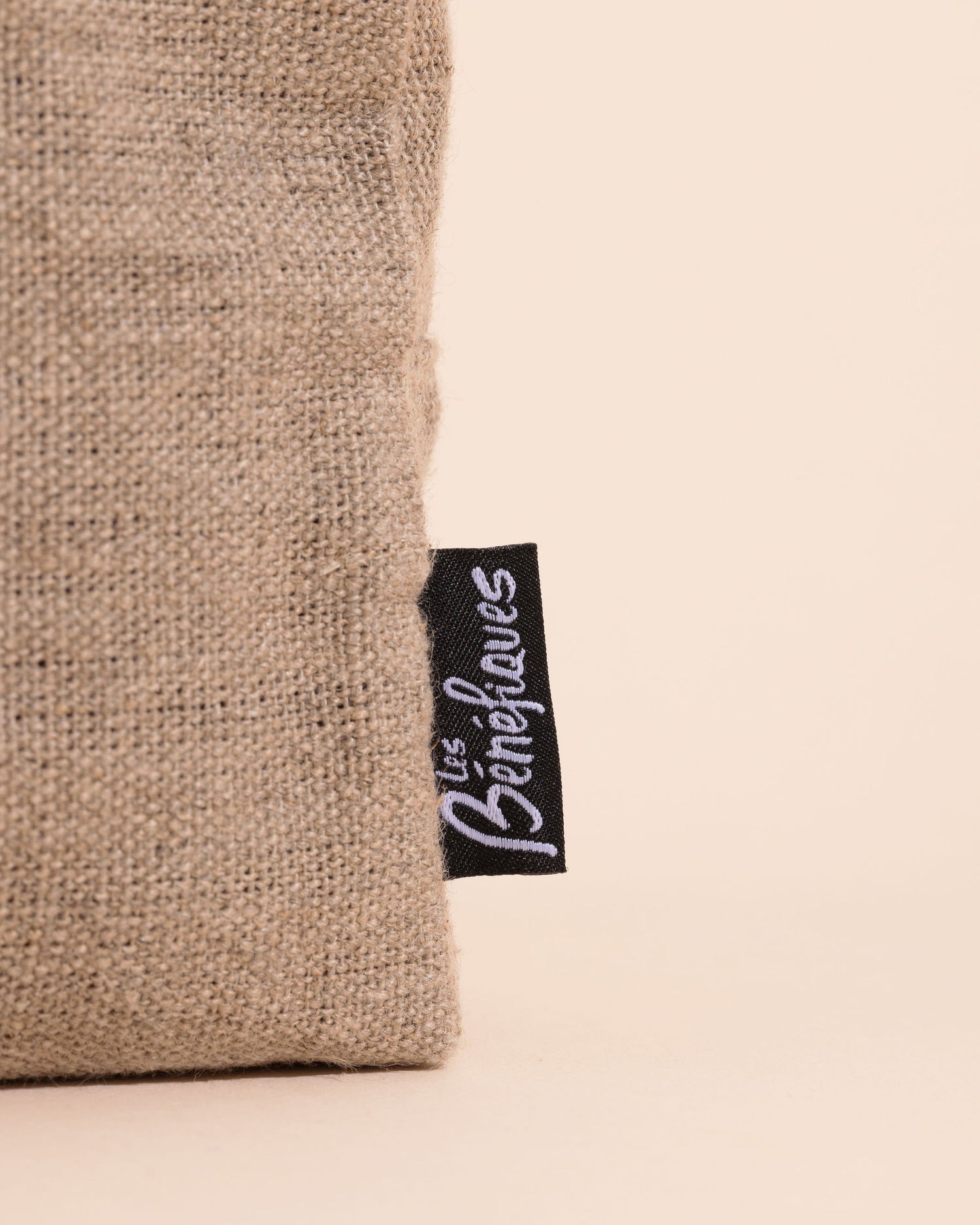 L’atelier de couture sur place, collabore avec le Tissage du Ronchay fondé en 1845. C’est l’un des derniers tissages en France. Et depuis 6 générations, ils tissent de la jute et maintenant du lin cultivé directement en Normandie pour qu’il ne quitte jamais la région !