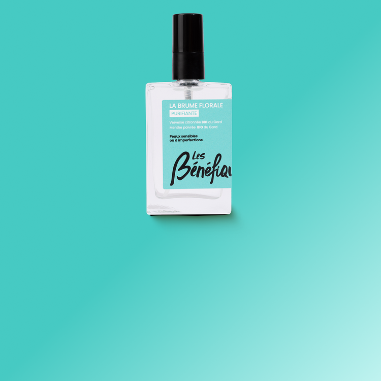 Notre Brume Florale Purifiante s'utilise seule ou dans notre routine de soin Bénéfique : avant votre Sérum Concentré Hydratant et votre Huile de Soin.