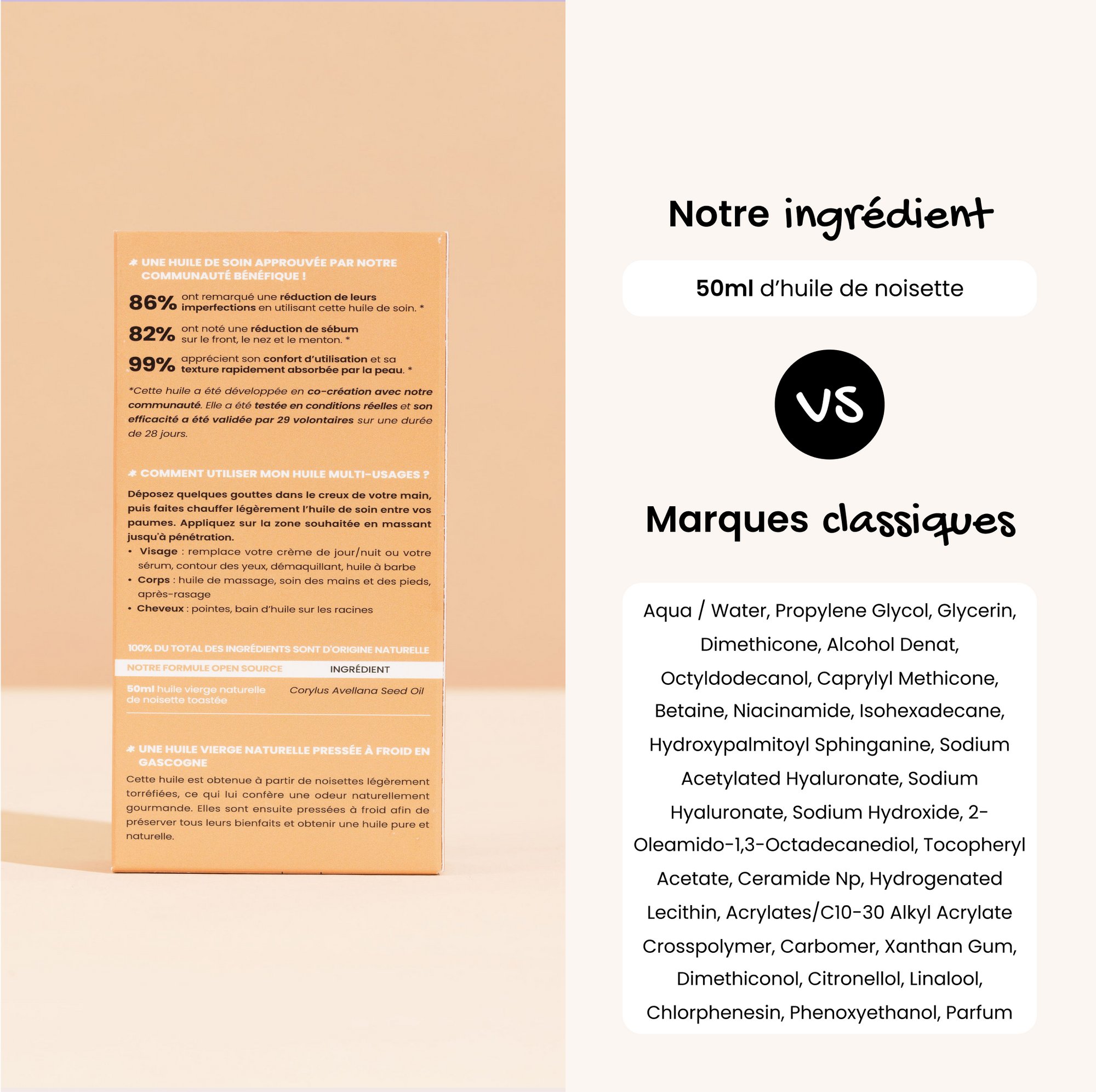 Huile de noisette régule la production de sébum, sans fini gras 🇫🇷 Produite en Gascogne | 50ml |