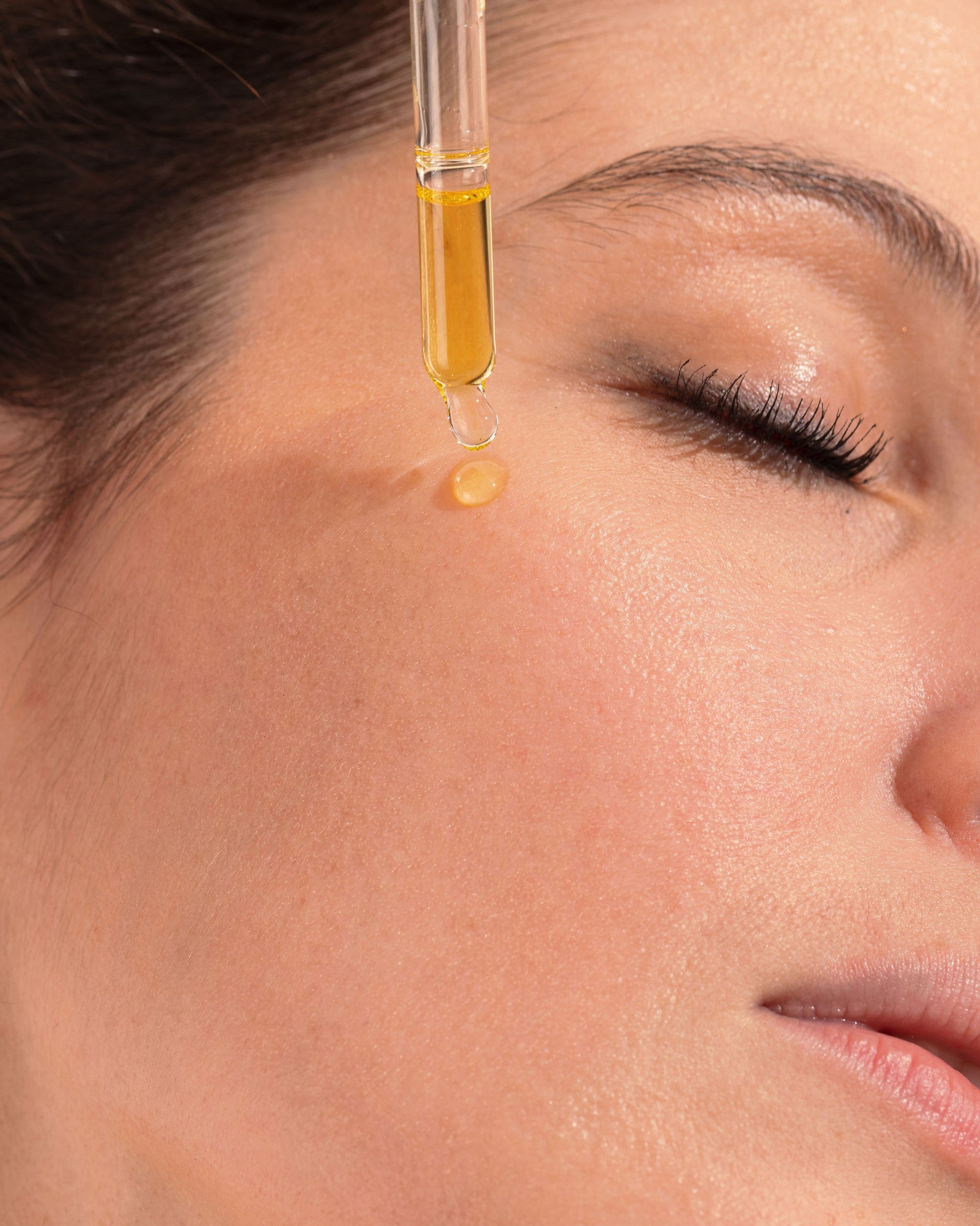 A l'aide du compte-goutte, déposez 3 à 4 gouttes de sérum dans le creux de votre main.