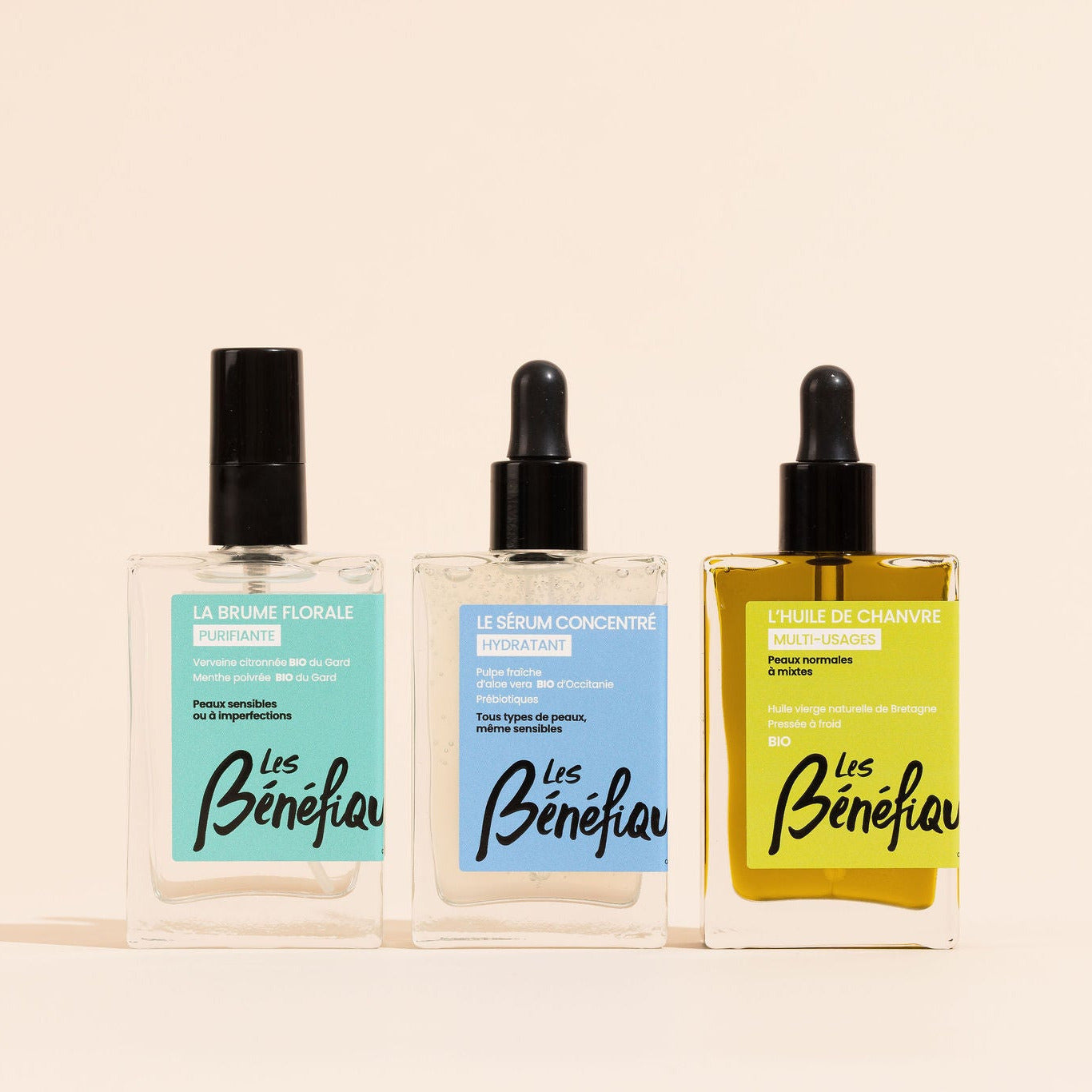 Chez Les Bénéfiques, nous avons fait le choix de la transparence radicale. Toutes nos formules sont rendues publiques, directement sur nos emballages, avec le détail exact de chaque ingrédient. Vous savez précisément ce que vous appliquez sur votre peau.