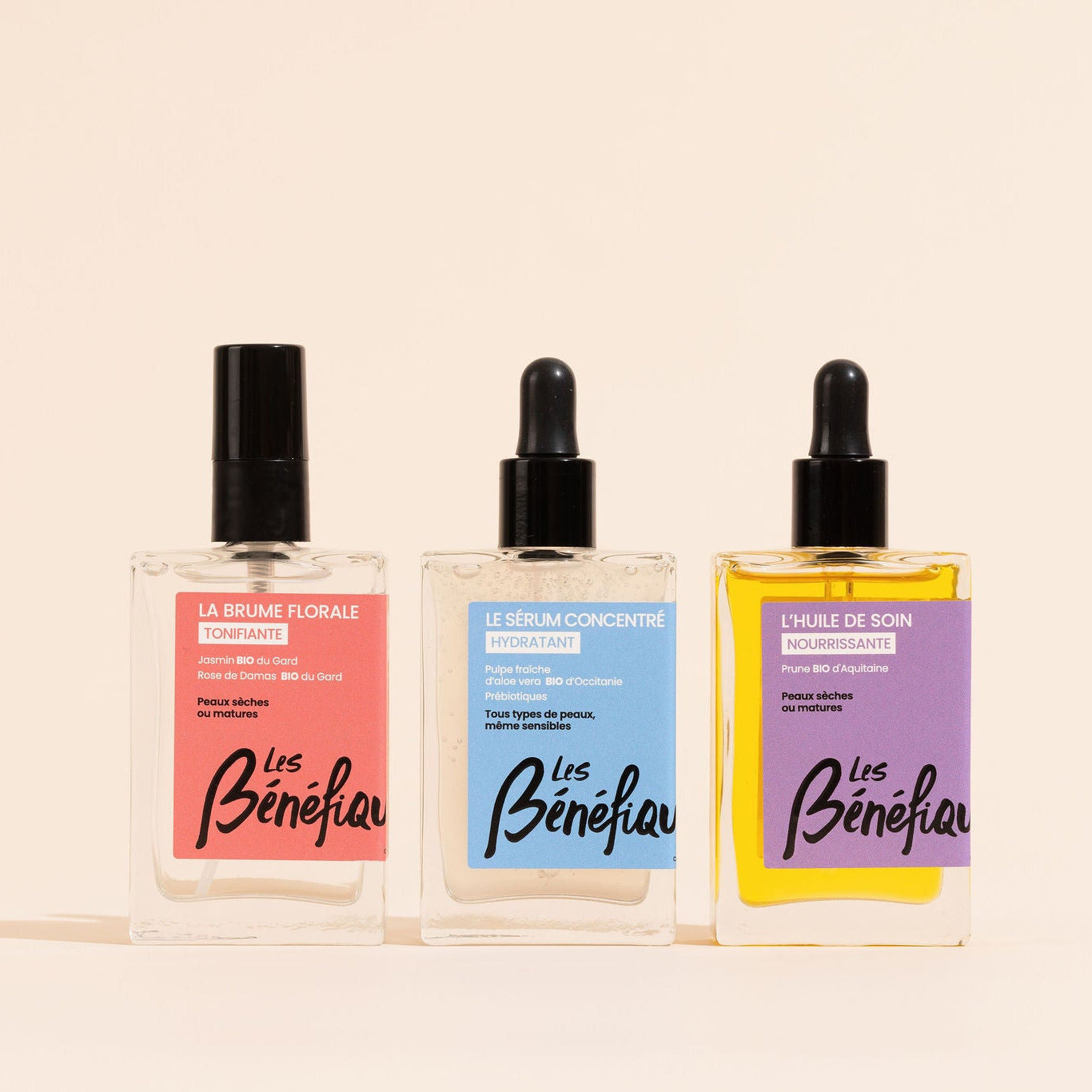 Remplacez votre crème ultra-transformée par notre routine Bénéfique minimaliste. En 3 étapes seulement, préparer, hydrater et nourrissez votre peau sans ingrédient controversé !